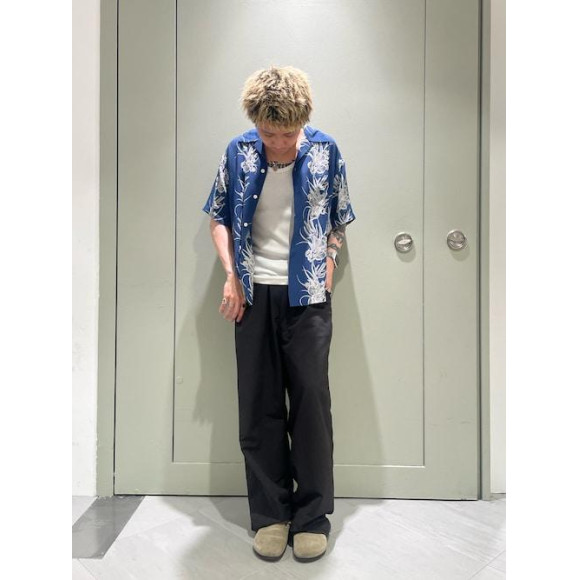 推荐的衬衫搭配◎ “schott”的卡塔斯衬衫!里昂100%的触感以100分满分,以裤子的漂亮眼睛搭配为重点,打造了花纹衬衫的造型。 底特姆斯是“B'omnivore”的皮带史莱克斯!连夏天也不用在意就能穿的质地感很薄,确定了蛇头◎