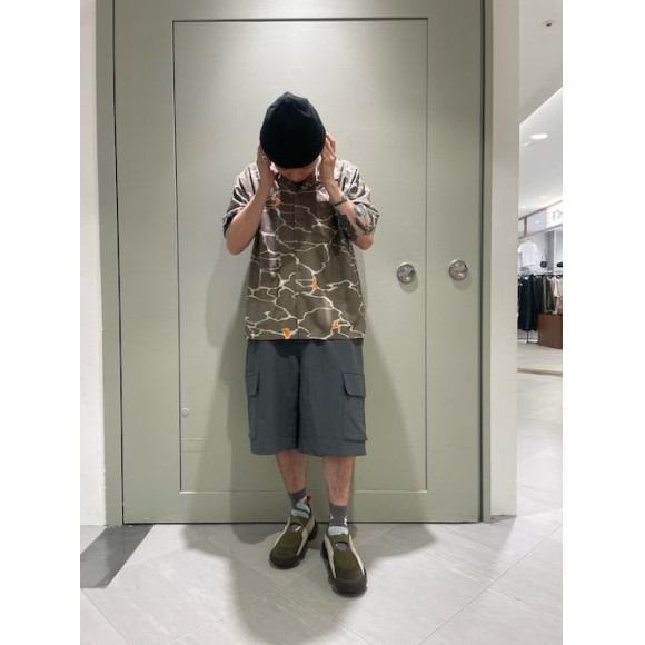 因为是稳重的花纹,所以主张不那么强烈,而是穿着披着的衬衫来兜裆布。◎